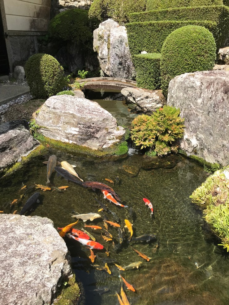 In the last of the mountains in Tokushima prefecture, the night before the second henro-korogashi „double trouble“ climb (steep up-down-up-down), I found myself unexpectedly sharing a tatami room with 2 other women: a Japanese lady of 81 and a Swiss-Danish lady in her early 70s, both doing the whole pilgrimage! Both lovely, and both so good at snoring they could represent their countries for it in a contest. My sleep-o-meter got to about 1 hour that night.