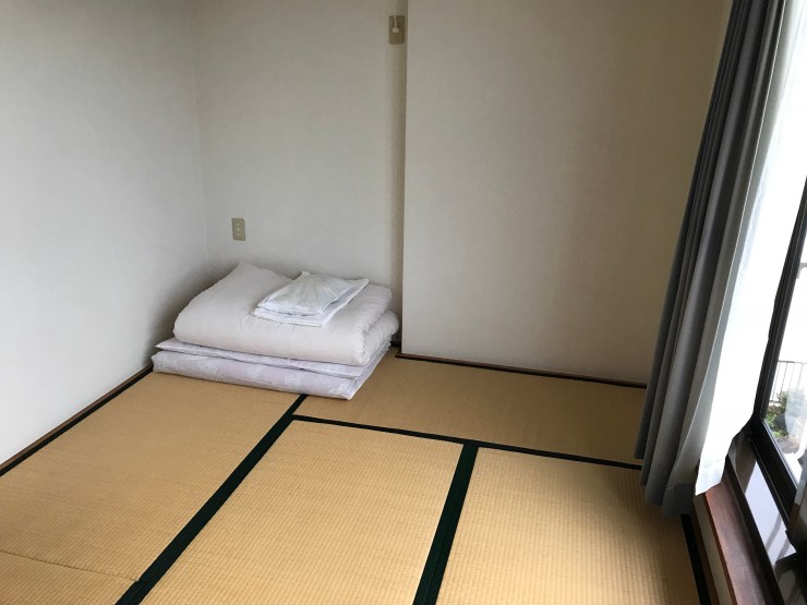 I must share a picture of my room that night. It‘s minimalist, just the tatami floor and one thin futon, but it is spotless. I cannot sleep, again, for there is no way to get comfortable on the floor. At about 9 pm I get up to ask at the front desk whether I can have another futon, but the place is deserted, locked up. I go searching for a linen room, but only find a bath house, with an empty bath – they did not bother filling it for one guest. I return to my lonely room, getting weary of „life on the floor“. With aching legs it‘s hard to get up from sitting, and forget writing on the floor. Without a chair, or at least a table, no blog.