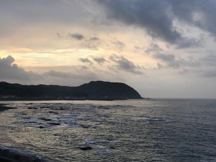 During the walk with fellow henro Matsu the other day, it was not only he who slowed to my pace, but in fact I had walked faster than my usual pace because of him. A mistake. A few kilometres from our hotel I experienced a strange pain in my lower shin. I do not know what shinsplints are, but this was really stabbing and caused me to stop and gasp a few times. Remembering the YouTube of Ingmar from the Netherlands who had knee problems, a Japanese doctor had told him to walk more slowly. Well, I already am walking slowly – my only two speeds are slow and very slow – so what is this pain? It disappears for a couple of days of walking joy, but returns on this day down the coast, really causing me to stop often. Not only this, but I have been wondering why it‘s taking me so long to get down the coast when I see the scale on this page in my guidebook is different. Normally one square is one km, but on this page a square is two km, go figure! Aagh, it will take me ages to get to my lodging…!