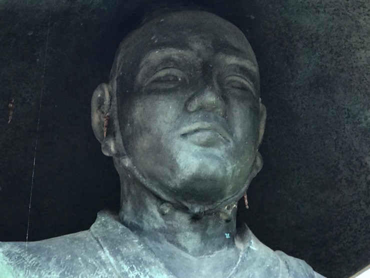From the top of the steps I absorb the landscape, stunningly beautiful. I don‘t even know where to head first. But of course, to rinse my hands and ring the bell. I know the drill. I write my final nameslip and walk over to the grand statue of Kobo Daishi.